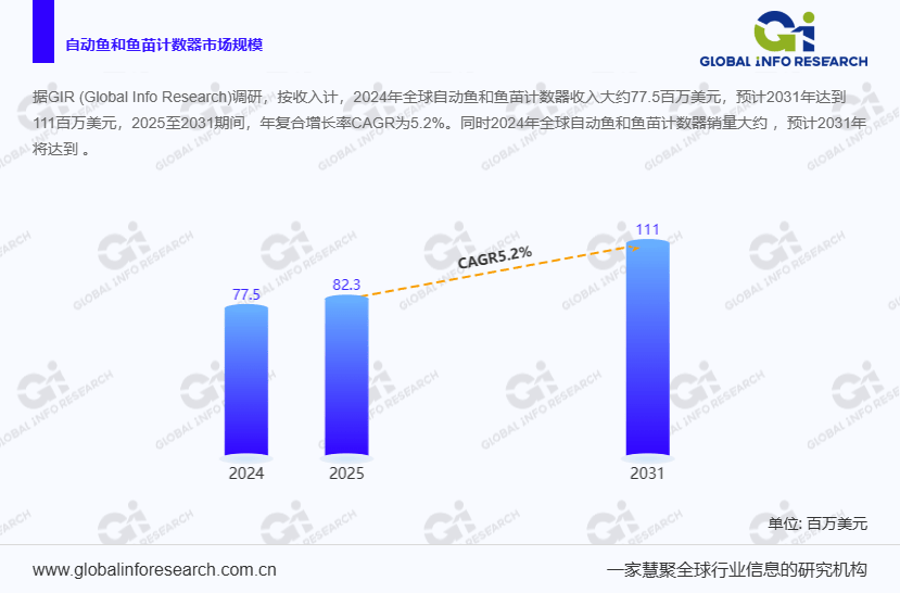 从动鱼和鱼苗计数器是一种公用设备,用于正在贸易中精确高效地确定鱼和鱼苗数量。摄像头或光学识别系统等先辈手艺,正在单个物品通过指定区域或传送系统时对其进行检测和计数。对于鱼类,它能够处置各类尺寸和类型,精确区分和计数。这种从动化处理方案削减了人工计数的需求,人工计数既耗时又容易犯错,而是供给靠得住而快速的计数成果,这对食物行业的企业(包罗鱼类加工场、餐馆和快餐连锁店)很是有用,由于精确的数量评估对于运营、成本节制和客户对劲度至关主要。跟着全球水产行业智能化升级,这类设备正从 “辅帮东西” 改变为 “效率焦点”,其市场规模的持续扩张也为财产链上下逛企业带来了新的增加空间。按照广州环洋市场消息征询无限公司(Global Info Research)最新发布的调研数据,2024 年全球从动鱼和鱼苗计数器市场收入已达到 77。5 百万美元,估计到 2031 年将冲破 111 百万美元大关,2025 至 2031 年期间年复合增加率(CAGR)不变连结正在 5。2%。这一增加趋向不只反映了全球水产养殖、食物加工行业对从动化设备需求的持续上升,也凸显了从动鱼和鱼苗计数器正在提拔出产效率、降低人工成本、保障计数精确性等方面的焦点价值,为相关企业供给了清晰的市场增加预期和计谋结构标的目的。
